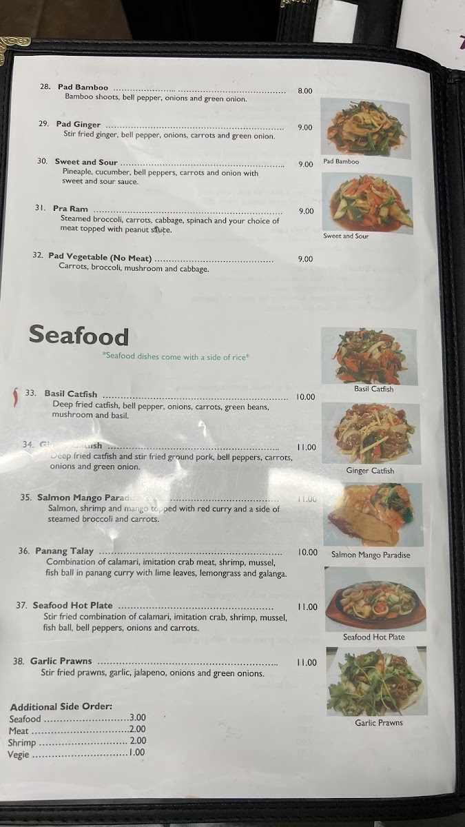 When it comes to standout options, a few dishes really shine. Their Pad Thai is a local favorite, perfectly balanced with tangy tamarind and crunchy peanuts. The Green Curry bursts with flavor, offering just the right kick for spice lovers, while the Tom Yum Soup brings a zesty, aromatic blend that’s both refreshing and satisfying. For appetizers, crispy spring rolls and flavorful satay skewers make for the perfect start to your meal.